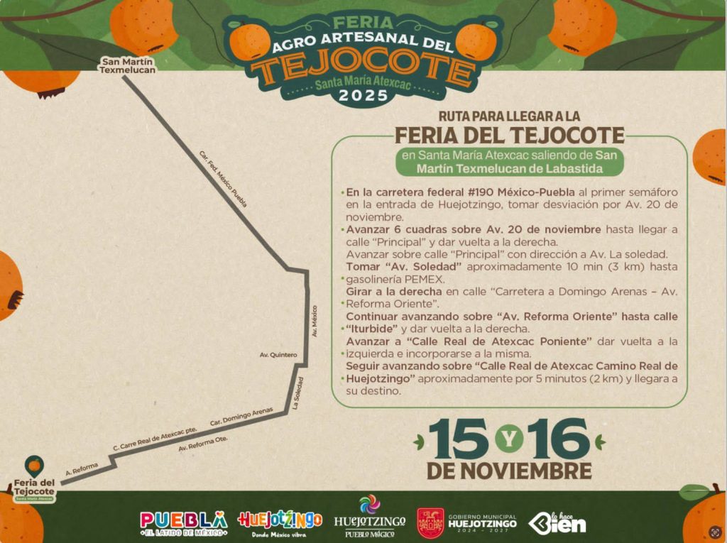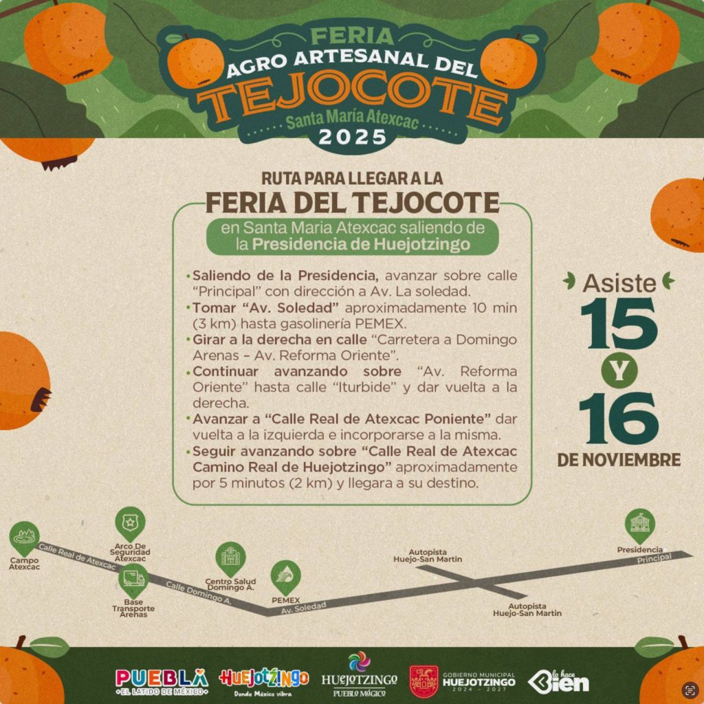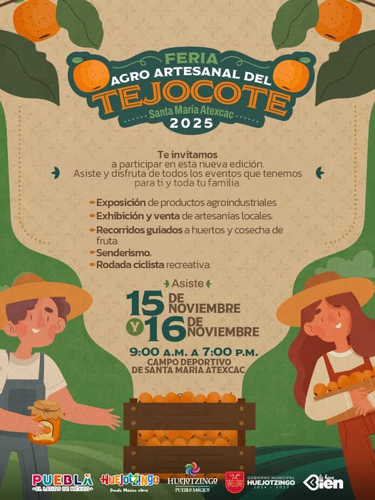 La Feria Agro Artesanal del Tejocote 2025 se llevó a cabo los días 15 y 16 de noviembre en la localidad de Santa María Atexcac. El evento funcionó como un espacio de exposición, celebración y promoción de la producción local de tejocote.